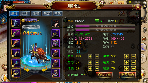 精力:每点增加4点法术防御