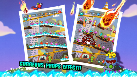 既然说到消除游戏,因此当然就是怪物们自上而下地想要抓住罗奇了,而一旦被怪物们抓住罗奇就挂了哦,玩家的任务就是用罗奇手中的火箭喷枪阻止怪物们的入侵!