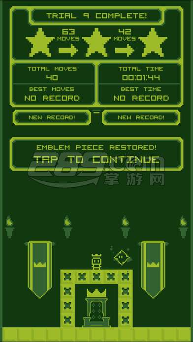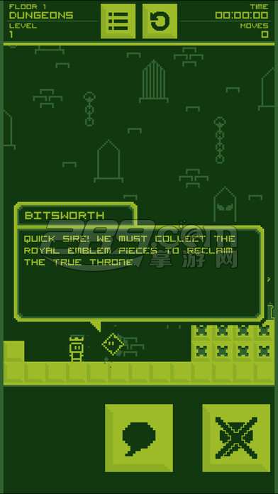 《To The Throne》是一款充满复古风情的作品。不仅画面致敬Gameboy,玩法也与上世纪80年代作品颇为相似。玩家要通过平移的方式控制国王移动场景中的箱子,在每一关中搭建出通往王座的通路,收集纹章碎片,帮助他证明自己的力量。