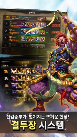 《英雄的碰撞:桃园结义(??? ??: ????)》无限金币钻石版是一款精美的三国策略对战手游,如今游戏已经正式登录安卓平台,厂商为纪念游戏的上架准备了多种活动,自11日起登陆游戏的所有用户将100%获得传说级角色司马懿,在等级升至90级的过程中还可获得各种金币与传说级武器、传说武将魂石、进化丹等价值30万韩元的游戏道具。